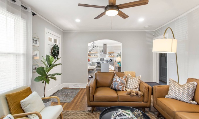 🎯 LOCATION: This newly remodeled two-bedroom bungalow is centrally located in Greenville, SC and it comfortably accommodates up to 4 guests. It is a short distance from downtown, the Swamp Rabbit Trail, Traveler's Rest, Furman University, Bob Jones University, world-class rapids, biking and hiking trails and some of the best state parks in South Carolina and North Carolina.