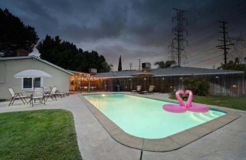 Providing an outdoor swimming pool, Chic Boho Retreat - Pool, Patio, Mini Golf & Arcade, Mins from Universal Studios! features accommodations in Los Angeles. This property offers access to a balcony and free private parking. Universal Studios Hollywood is 5.6 miles from the vacation home and Dolby Theater is 7.9 miles away. With free Wifi, this 3-bedroom vacation home provides a flat-screen TV, a washing machine, and a fully equipped kitchen with a dishwasher and oven. Towels and bed linen are provided in the vacation home. The property has an outdoor dining area. Guests can also relax in the garden. Capitol Records Building is 8 miles from the vacation home, while Hollywood Bowl is 10 miles away. Hollywood Burbank Airport is 1.2 miles from the property.