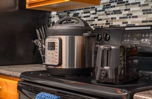 - Channel your inner chef in the well-appointed kitchen, complete with a microwave, stove, oven, Instapot, toaster, and all the essentials for whipping up delicious meals.