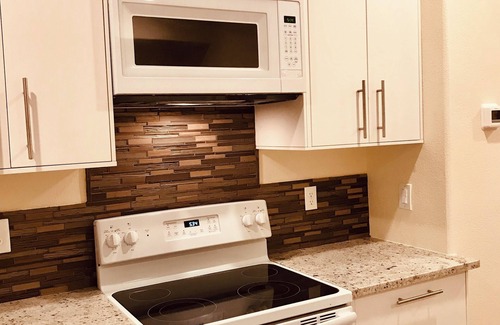 The full-size kitchen is complete with refrigerator/freezer, four-burner glass-top range, microwave, and dishwasher. You have everything needed for a private and comfortable stay.