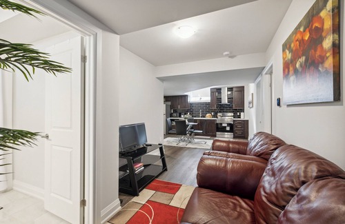 Cozy, calm and well provisioned unit awaits you after a buzzing day. 11minutes drive from the Fall and a 5 minutes drive to major amenities and restaurants. Our suite is equipped with a full kitchen, laundry, blackout window treatments, and a separate entrance unit enabled with smart access provision.