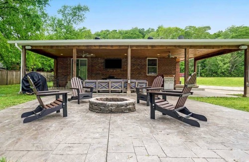 Welcome to Creekside Hangout Home! This fantastic vacation rental provides a peaceful retreat that wakes you up to the sound of nature surrounded by trees and scenic beauty. Situated next to several canoe rental businesses and only a short distance from the Harpeth River, you can be out on the river in no time. The property offers a spacious backyard and a clubhouse suitable for guests with children. In the evenings, gather around the fire pit for stories and stargazing with families and friends
