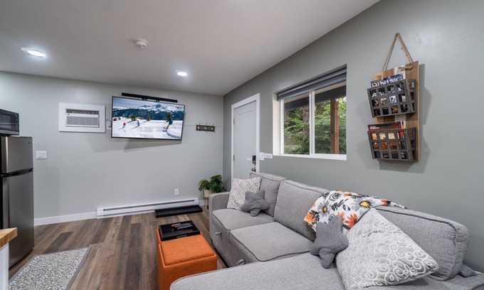 Lovely modern artistic cottage in Downtown Loveland's art district. 2-story with kitchenette & plenty of amenities for a comfy vacation in Northern Colorado. Queen bedroom, closet & large flat screen TV. 2nd space on this level: full size futon. Just 5 blocks from local eateries, theaters, art studios, museum, bike path, pinball arcade, axe throwing bars & LUX movie theatre!