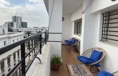 Stay in the very heart of Rabat and enjoy a unique blend of comfort and charm. This spacious apartment features a bright open living room, two private terraces with sweeping city views, and stylish touches that make it feel both elegant and cozy. Perfectly located near landmarks, cafés, and cultural spots, it’s the ideal base to discover Rabat while relaxing in a home that offers space, warmth, and character.