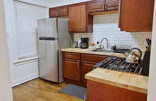 This chic 2BR apartment offers a stylish and comfortable stay with modern furnishings and thoughtful touches. Enjoy a spacious living room, fully equipped kitchen, two cozy bedrooms with queen beds, and a clean, updated bathroom. High-speed Wi-Fi, smart TV, fresh linens, and essentials are included. Located in a lively neighborhood with great dining, shops, and easy public transit access—ideal for both short visits and extended stays.