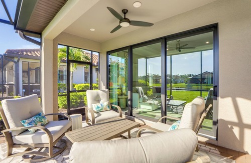 Soak up the Gulf Coast lifestyle at this 2-bedroom, 2-bath Bradenton vacation rental. With high-end finishes, a home office, and resort-style amenities, this stylish villa was built for long-term stays. Sip coffee on the screened lanai as the sunrise hits the pond, then tee off at Lakewood Ranch Golf or unwind on Anna Maria Island. Afterward, end the day with a sunset swim in the community pool.