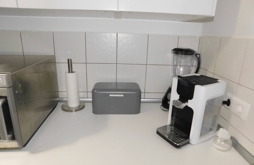 This beautiful two room apartment was renovated in December 2018. It is located on the ground floor and has a nice exit to the garden. Bedroom and living room are on the south side of the house. If you love the charm of the 50s, will feel comfortable here. The house was preserved in its original structure. Generous is the leafy outdoor area, which was very typical for this time period.