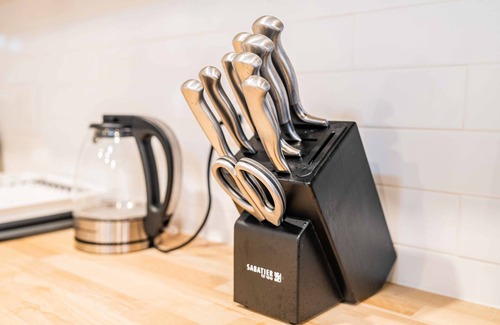 Relax in one of our two inviting bedrooms, each furnished with a queen bed adorned with high-quality linens, and enjoy the convenience of a well-appointed bathroom stocked with essentials like towels, soap, and shampoo.