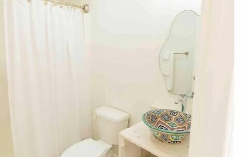 The full bathroom offers a haven of relaxation, featuring a shower, toilet, and sink. Fresh towels and complimentary toiletries are provided, allowing you to pamper yourself after a day of outdoor exploration.