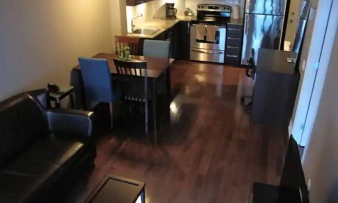 Gorgeous sunny & clean open concept condo with high end finishings, Brazilian hardwood floors through out, 14 foot ceilings & large floor to ceiling windows. All the furniture is modern and the condo is nicely decorated as seen in the pictures. Living room comes equipped with Flat screen Tv, Fibe Cable, DVD player and unlimited high speed wireless internet. Kitchen has granite counters all stainless steel appliances and offers everything needed to cook as well as all kitchen essentials. There is 1 fully closed bedroom with a queen bed and large closets to arrange your personal items. The living room has a pull out futon sofa bed, plus a couch and if needed we could also supply a blow up bed if a 3rd bed is needed.