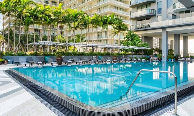 Experience Miami at its finest! Staying in the exciting Midtown district, our 4-star unit offers stylish accommodations, equipped with a kitchenette, balconies, and comfortable beds, all for your tranquil retreat amidst the energetic city life. As evening dawns, get a taste of Midtown's vivacious scene. Appreciate in spectacular rooftop dining and unwind by the poolside. Our amenities also include a tennis court and fitness center to keep you active