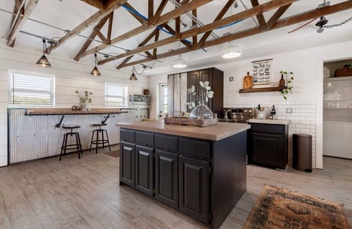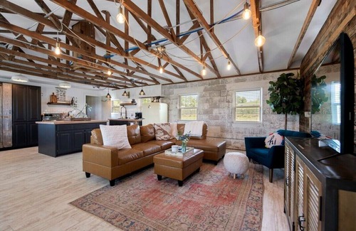 Step into our Milkbarn, where the charm of Arkansas' rustic heritage meets the comfort of modern luxury, nestled amid serene farmlands, away from the hustle and bustle. Constructed from an enchanting 1900s milk barn, this modern home retains its character through thoughtful design elements like vaulted ceilings with exposed beams and reclaimed barnwood accents.