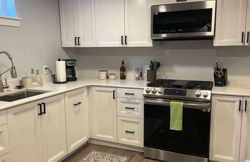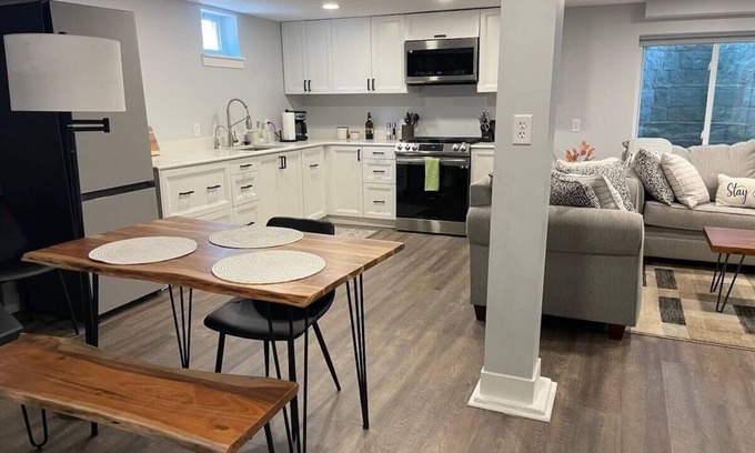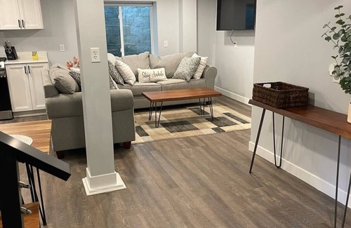 Step into a delightful blend of classic architecture and contemporary design. Our cozy basement is newly remodeled, boasting a spacious bedroom and a pristine bathroom. Revel in the open concept kitchen and living room that's perfect for unwinding. With a convenient pull-out sleeper in the living room, it's a splendid fit for up to 4 guests. Every nook reflects thoughtful design, ensuring you have a memorable stay.