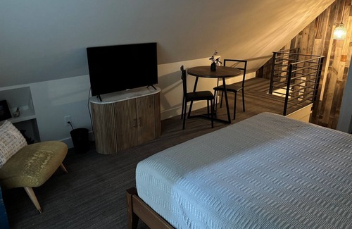 Tucked above the garage of our home, this spacious loft offers a peaceful and private escape—perfect for relaxing after a day of adventure. Accessed through the garage and up a narrow, winding staircase (please be aware if mobility is a concern), the loft is bright and airy with high ceilings, cozy furnishings, and plenty of room to unwind. You’ll enjoy a private bathroom, a comfortable layout, and all the essentials for a restful stay. Whether you're here to explore the mountains, visit nearby attractions, or just need a quiet place to recharge, this inviting space is the perfect home base.