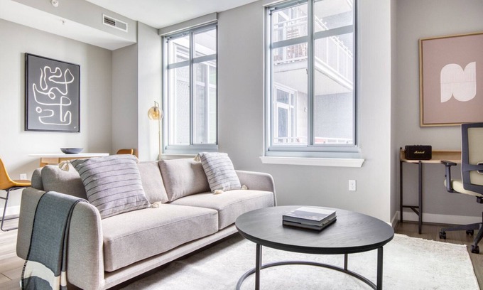 This furnished apartment is situated in the heart of Navy Yard, conveniently located a block away from the Navy Yard Metro and across the street from Nationals Park. This fast-growing neighborhood is now a main attraction in DC, due to its proximity to the Southwest Waterfront and abundance of activities for locals and visitors alike. Visit Canal Park and explore the seasonal markets and events, grab dinner and drinks at a local brewery or upscale Italian restaurant and top it off with Ice Cream Jubilee for delicious, creative flavors of hand-made ice cream. Also be sure to check out the rooftop of the brand-new building where our luxury Blueground apartment is located for sweeping views of the city and even a direct view into Nats Park!