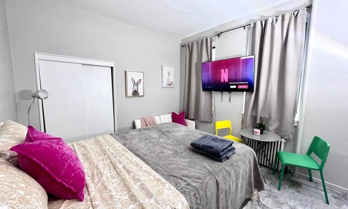 Escape to this cozy studio in picturesque New York. This cozy retreat features a Nice bedroom with a king bed, a cool bathroom with a hair dryer, and essential amenities like AC and WiFi. Experience the magic of New York at our studio.