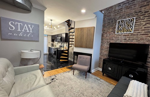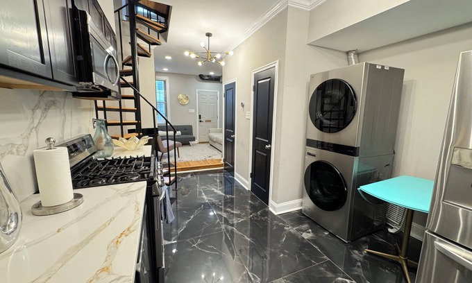 This stylish and CHIC DC townhome offers a unique blend of modern design and comfort. With all-new furnishings, it accommodates up to 5 guests (2 queen beds upstairs, and 1 sofa futon in the living room) and features 1.5 bathrooms. Centrally located, you're just steps away from vibrant city life, top-rated restaurants, coffee shops, and the metro station for easy access to all DC has to offer. Experience the best in style and convenience—perfect for your next stay in the capital!