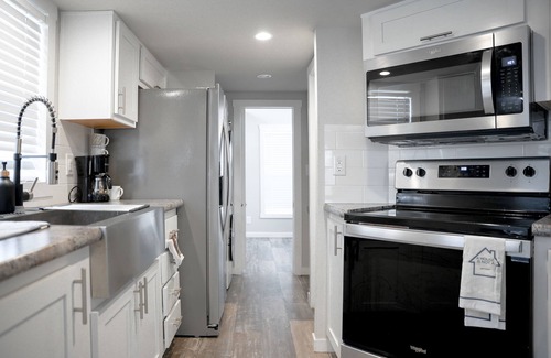 Fully Equipped Kitchen: Whip up delicious meals with our full-sized refrigerator, stove, oven, and microwave.