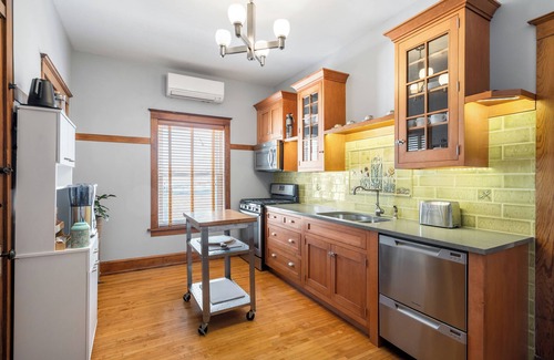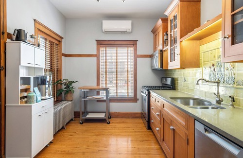 Step into vintage charm at Maison Winona, a 1908 Prairie School stunner by Chicago architect Frederick Schock, in the heart of Andersonville. With interiors that whisper ooh là là, Maison Winona blends boutique comfort with a maximalist vibe. Enjoy a lush private balcony, and free street parking. A 10-min stroll brings you to Lake Michigan, the Green Mill, Chicago Magic Lounge, and Clark St’s top restaurants. Perfect for families, friends, and bon vivants seeking a one-of-a-kind Chicago stay.