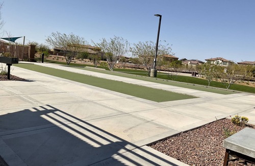 There is a Community heated pool and recreation center within two blocks. Pickle ball court, bocci ball and ping pong table.