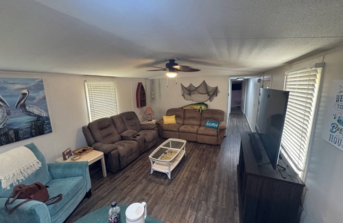 Enjoy a tranquil stay at this 2-bedroom mobile home in Shallotte. The cozy space features 1 queen bed and 1 full bed, perfect for a small group of guests. With heating and AC, you'll stay comfortable no matter the season. Our place is equipped for both long or short stays to make your holiday one to remember.
