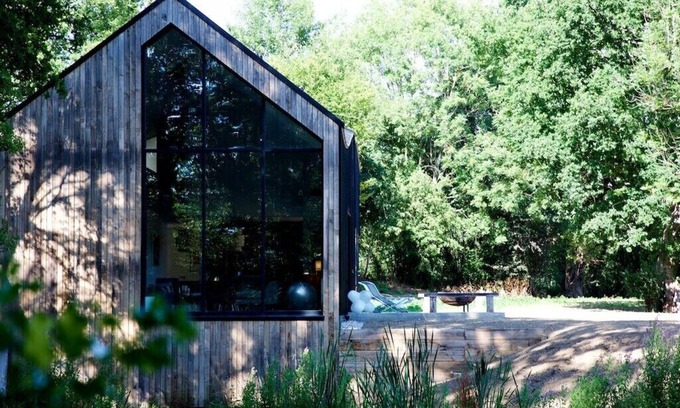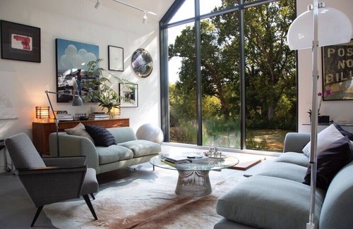 Staying at Skywood Barn will give you a feel of the English countryside at its best. It's a contemporary home, with a stunning double height window in the main open plan space overlooking the pond with woods behind. The barn is totally secluded and views from the rest of the house are of fields surrounding the property. Enjoy swimming in the pond, long country walks, going to the local pubs and exploring the Kentish countryside full of beautiful gardens and vineyards.