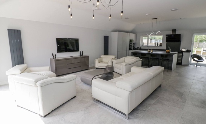 Amenities: Gas central heating. Electric oven, electric hobs, microwave, fridge/freezer, washing machine, tumble dryer, dishwasher, wine chiller. Smart TV and WiFi. Fuel and power inc. in rent. Bed linen and towels inc. in rent. Private driveway parking for 4 cars. Enclosed rear garden with lawn, patio, furniture, hot tub, and barbecue. Sorry, no pets. No smoking.