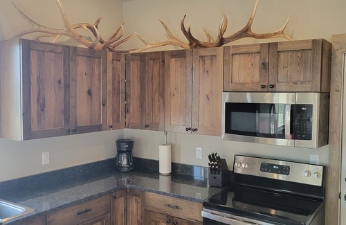 Attached is a two stall deep garage for a vehicle or two or recreational vehicles, boat, etc. We have stocked the home with everything you should need for a peaceful stay in our Montana home. Weber BBQ grill, patio furniture, fire ring, interior amenities of all kinds. Come enjoy our home and Montana as much as our family does.