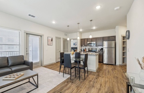 This modern unit features upscale décor, a fully equipped kitchen, cozy living space, and all the essentials for a comfortable stay. Enjoy high-speed Wi-Fi, in-unit laundry, smart TV, and a peaceful setting just minutes from Fort Worth and Dallas. Whether you're here for work or relaxation, this space is designed to feel like home.