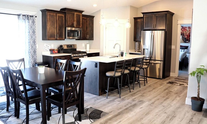 Your family will be close to everything when you stay at our brand new, centrally-located place. It is just minutes from the freeway, the hospital, the university, several parks, and lots of restaurants and shopping. There is plenty of room for your family to sleep and be comfortable, along with an open floor plan with a large kitchen and dining/family area. Enjoy the big back yard, ping pong table, choose from one of our many board games, or go enjoy the town! There is plenty do all year long.