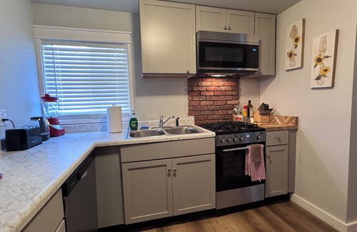 Situated near the third-largest rail freight yard in the U.S you'll love the unique train-themed ambiance. While you unwind on the deck, keep an eye out for graceful deer and enjoy the soothing sounds of trains rolling by. Plus, there’s ample parking available for RVs, making it a great choice for those is in town for a service call.