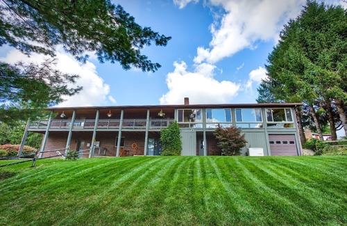 This lovely, spacious Oakland, Maryland home comfortably sleeps 10 people. There are four bedrooms and three full baths. It offers a well-appointed kitchen, dining room and a huge, brightly lit craft area. There are multiple cozy seating areas including two big porches at your disposal when you need a break from creating.