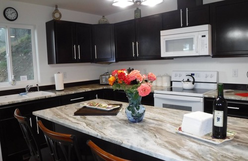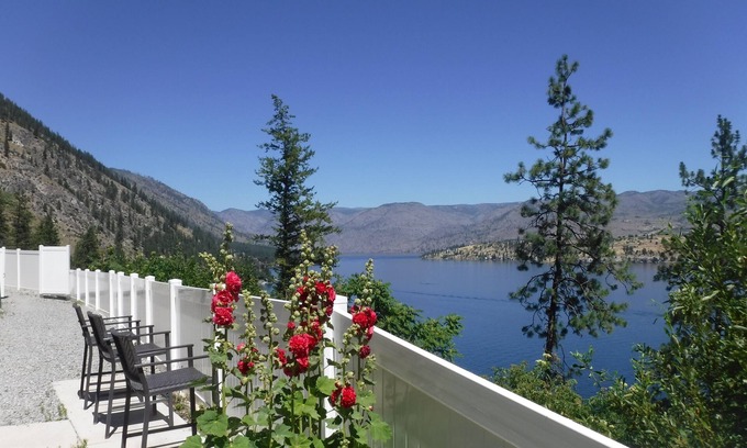 Perched on a prime spot overlooking the lake across from Manson Bay, this a great choice for your stay. No surprises here, just a nice home in a cool, safe setting that is close enough to the action without the noise and traffic. Look at the pictures and read our 5-star reviews. Our home features large bedrooms, nice bathrooms, an open dining / well stocked kitchen and a wonderful fenced in yard with relaxing gardens and a pergola dining deck. Soak in the large, jetted master bedroom tub and enjoy the central AC on those hot summer days. The garage is also a game room with lake views. Only 5 minutes to the State Park Beach, a 20-minute scenic drive into town, 10 minutes to the nearest winery, but light years from city noise and traffic, this is a great non condo option for families, couples and friends who want space and a place to create some great memories and chill. If you want peace and quiet away from the crowds and 180 degrees viewing of this picturesque valley and the critters that inhabit it, this is your place. Peaceful, private, and 1 mile from the State Park beaches, watercraft rentals and boat launch. Use the money you'll save staying with us for your daytime adventures. Rent watercraft. Take a wine tour. Ride the Ferry Boat to Stehekin for a day trip. Go to your relatives wedding event, family reunion, or in town activities then come home to your quiet, happy place and get a good night’s sleep. This is our happy place, too, as we live next door, so no parties, reunions or events allowed, no more than eight people allowed on site. Boats and trailers can park on the owners' driveway next door, on the lakeshore road shoulder below the house, or at the State Park launch area. Don't pay more to get less and be with the crowd in crowded, noisy places when you can choose this view, these gardens, and peace and quiet that comes with a nice clean house that isn’t that far from the adventures guests seek in Chelan. Owner checks in all guests so please be transparent in your booking requests so you and us will both have a great stay! Read the reviews and our rules section.