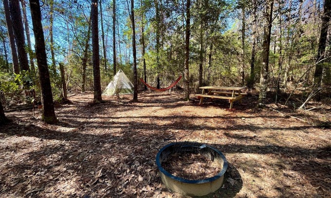 Sleep under the stars with your own fire & cozy camp spot on our 15 acre Christian Retreat! We have 16 miles of hiking & mountain biking trails available along with catch & release fishing and disc golf! Each campsite includes a picnic table & fire pit ring with grill rack. Water is available from a hose, the toilet is a port-a-potty & we have a camp store with basic supplies!