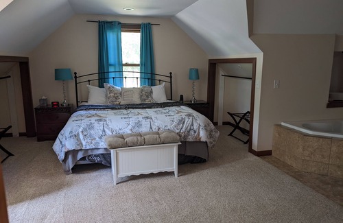 Our Retreat Center is a 6,000 sq ft modern rustic lodge situated on 10 partially wooded acres with comfortable bedrooms, areas to gather inside and out, and meeting spaces for small groups. There's a path through the woods with reflection stations and a prayer labyrith as well as a pool that's open during the warm season and a firepit area. Each nightly stay comes with a home cooked breakfast. We are a non-profit Christian retreat center with a limited alcohol policy. Drunkenness is not tolerated!