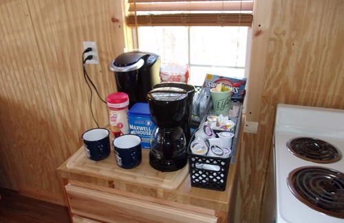 "THIS REFUGE IS FOR ANYONE WHO NEEDS TIME TO GET AWAY & UNWIND" OR EVEN WORK....... EVERYTHING RUNS ON ELECTRIC INSIDE & OUTSIDE THE COTTAGE , WE HAVE A SHELTER OUTSIDE FOR COOKOUTS DAY OR NIGHT , REGULAR LIGHTS , LARGE FLOOD LIGHTS , REGULAR PLUG-IN.....RV 30A PLUG-IN WITH A 50A ADAPTER IF NEEDED , PICNIC TABLES , GRILLS & EVERYTHING ELSE YOU NEED TO GO WITH IT......ALSO , DOWN BY THE WATER IS A PICNIC TABLE...AGAIN , LOOK AT THE PICTURES.