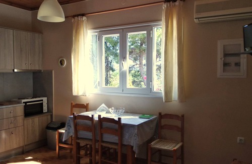 Christina Villa (50m2) can accommodated up to five persons. The villa has two bedrooms, spacious living room, fully equipped kitchen for self-catering holidays and bathroom. The villa is comfortable and afford sieves for the windows, air-condition, television and wireless-internet. Also features a hairdryer and iron. A private washing-machine is available in the corner of the complex.