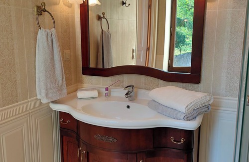 The interior of the château is adorned with timeless features such as high ceilings, intricate mouldings, exquisite frescoes, and vintage furniture, creating a captivating historical atmosphere without sacrificing modern comforts. The spacious layout accommodates your wedding party comfortably, featuring multiple living rooms, a dining room, and a fully equipped kitchen on the first floor, alongside elegantly appointed bedrooms with en-suite bathrooms. Guests can also enjoy leisure time on the second floor’s terrace, making it a perfect spot for pre-wedding photo opportunities or evening gatherings under the stars.
