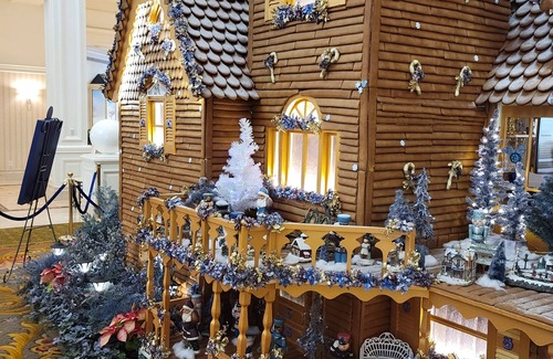 Christmas at Disney's Grand Flordian features a life size real ginger bread house, lobby Christmas tree of GRAND size portions. Walk or ride the monorail to Magic Kingdom. Watch fireworks from your room.