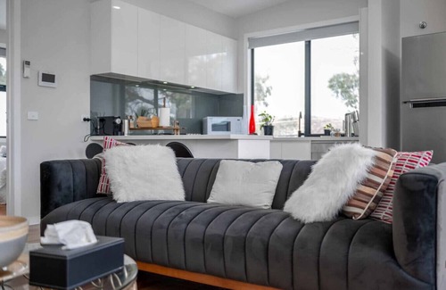 Experience luxury and convenience at Churchill Deluxe, centrally located in Maidstone. Complimentary wine and chocolate with each booking. With the tram just at our doorstep and a short 10km tram ride to Melbourne CBD, 2km to Western Private Hospital and 3.5 km to Highpoint Shopping Centre. Explore diverse dining, relax in style, and discover surrounding areas including Williamstown, Melbourne CBD, Yaraville, Flemington and Footscray. Pets welcome.