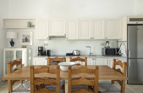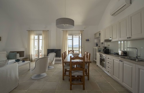 Akaste exudes eclectic sophistication and elegance, with soft white furnishings and light-blue touches, spilling over onto the spacious balcony that celebrates outdoor living with views across the vast Aegean. Akaste is ideal for 6 guests.