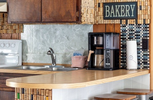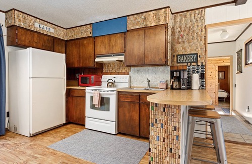 Cook up your favorites in the fully equipped kitchen, complete with a stove, fridge, microwave, coffee maker, and all the essentials. 🍳☕🥘