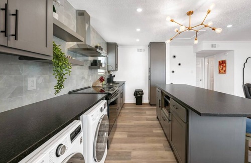 This media room themed apartment is centrally located for all things Bryan and College Station...just blocks from the A&M campus and the restaurants/entertainment at Northgate. Bedroom boasts comfy king bed. Enjoy the custom kitchen with huge island and the convenience of a washer and dryer.