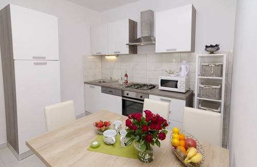 Villa is located on the island of Čiovo, of the city of Trogir connected by a bridge. Villa has it's own heated swimming pool with a temperature of 29-30 degrees. It is devided by two apartments, but can't be rented separately so it would be ideal for two families comming together or for a big group of people. Also, very good offer for a retirees and cyclists. In both you will find a kitchen, living room, bathroom, bedrooms, terrace. There is also barbecue area. This is villa for a vacation during all year. Max occupancy is 8 adults (children are up to 10 years old)