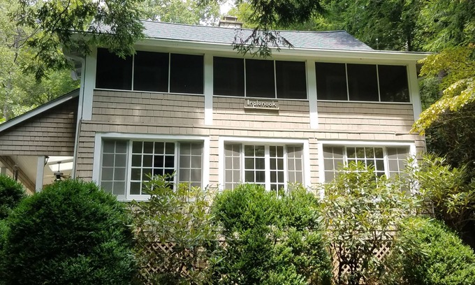 Let your family or friends make lifelong memories in our family home - Our home is a mix of historic Montreat character and today's modern conveniences. Newly updated kitchen and upstairs bathroom this year. Comfortable living room with gas log fireplace, dining room that seats eight at table, cozy den with brand new smart TV featuring streaming for Apple Music, AT&T TV NOW, Disney+, ESPN+, Google Play Movies & TV, Google Play Music, Netflix, Prime Video, Sling TV, Spotify, YouTube TV. The other TV's have ROKU loaded on them so you can log in to your favorite streaming apps. . We also have lots of games and books. Wi-fi throughout house, custom, fully equipped kitchen, covered deck for outdoor relaxing and dining, plus a back patio off kitchen with seating for additional outdoor enjoyment. Sleeping porch upstairs and glass enclosed front porch downstairs. Our house has all the modern features including central heat and air conditioning. ( please note information above regarding air conditioning) Easy ten minute walk to Lake Susan, children's park, tennis courts, Huckleberry snack bar, and Assembly Inn on paved sidewalk. Short five minute drive into downtown Black Mountain with unique shops, restaurants, and galleries as well as grocery stores, bank, library, and post office.