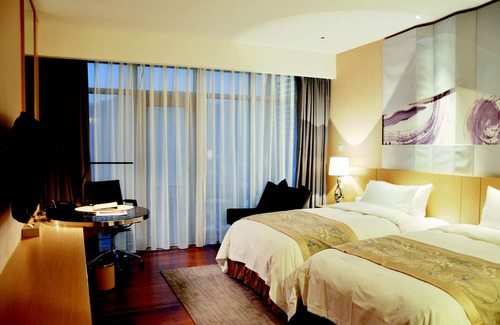 CITIC Jinling Hotel offers 339 air-conditioned accommodations with bathrobes and hair dryers. Rooms open to balconies or patios. A pillow menu is available. Flat-screen televisions come with satellite channels. Bathrooms include separate bathtubs and showers. Housekeeping is provided daily.
