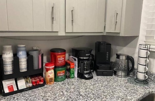 Food enthusiasts will find our fully stocked kitchen a culinary haven! Complete with new granite countertops, over-the-range microwave, undermount sink, brand new stainless steel appliances with an ice maker in the freezer, air fryer, and rice cooker, pots, pans, and condiments, it offers everything you need to prepare delicious meals during your stay. The coffee station is a coffee lover's dream, equipped with a Keurig machine, a drip coffee machine, and a French Press. Start your mornings with the perfect cup of joe, savoring the aroma and flavors in the comfort of your home away from home. Electric hot kettle is also available for tea and hot chocolate! We always offer complimentary oatmeal and the bagel bar for breakfast!