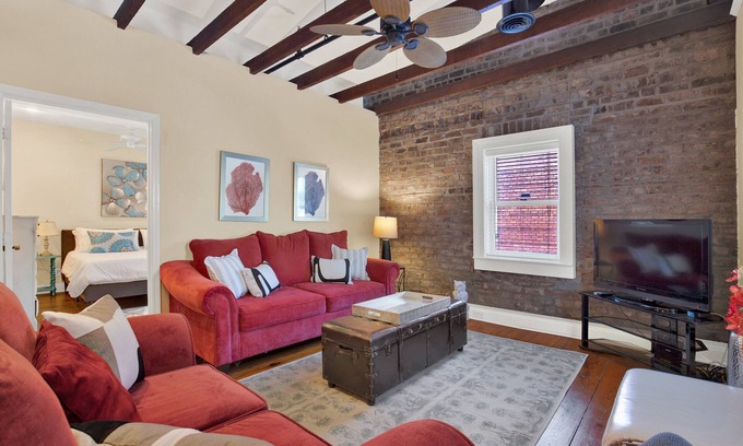 Whether you're visiting for a romantic weekend, a family vacation, or a getaway with friends, this sophisticated loft offers everything you need for an unforgettable stay. High-speed Wi-Fi keeps you connected, while the smart TV ensures entertainment at your fingertips. With modern comforts seamlessly woven into its timeless surroundings, this is truly one of the best Savannah vacation rentals for experiencing the city in style.