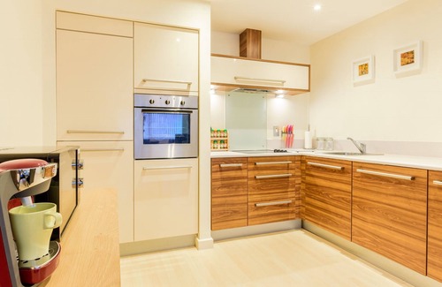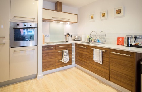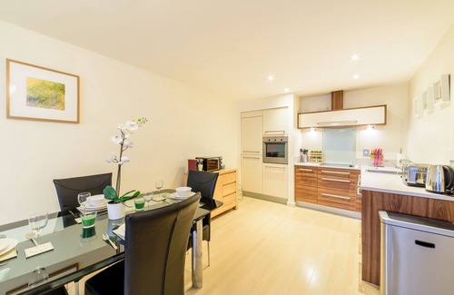 Our spacious apartment boasts a generously proportioned master bedroom with en-suite, good sized second bedroom and a family bathroom. Both bedrooms have comfortable double beds and there is a sofa bed in the lounge. The living space has a fully equipped kitchen with all essentials including a coffee maker. In the dinning space there is a large table and chairs and the lounge area has comfortable seating, perfect for relaxing after a day at work or a day sight seeing.