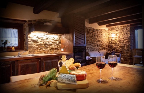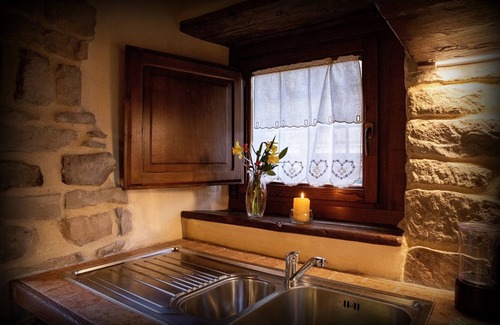 The kitchen in rustic Tuscan style was built by local craftsmen with the chestnut wood recovered from the ancients floors, and is equipped with high level dishes, fridge, oven, induction stove, dishwasher and espresso coffee machine.